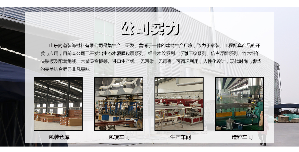 方通方木、吸音隔音板、共擠木塑地板、木飾面快裝墻板等。