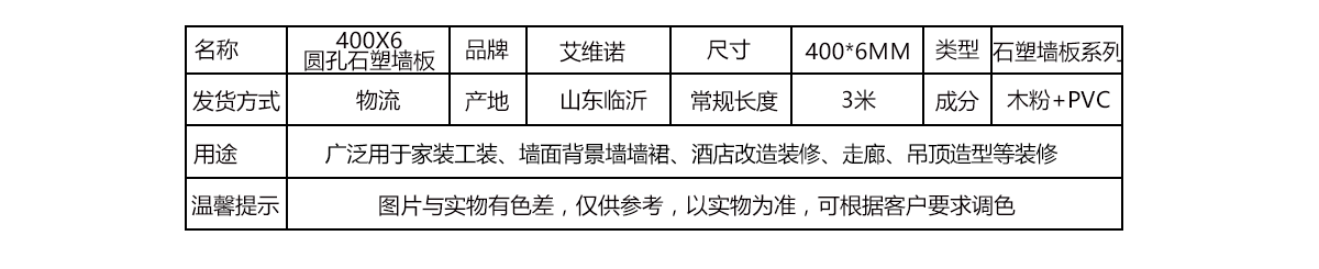 400x6圓孔石塑墻板