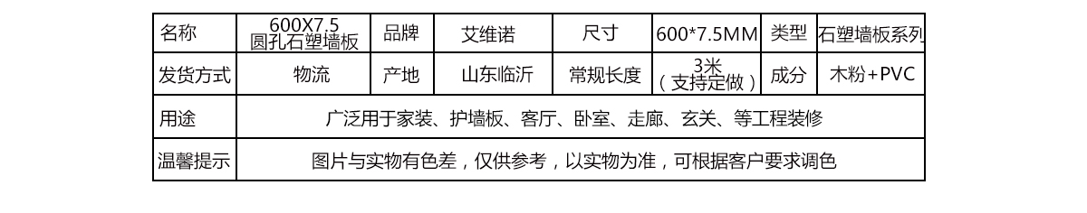 600x7.5圓孔石塑墻板